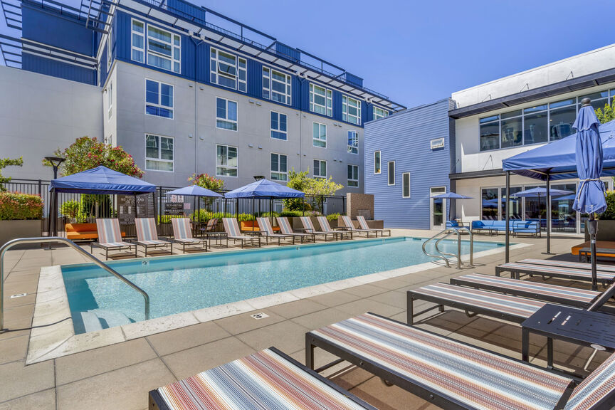 Domain Apartments is located in San Jose/Silicon Valley, home to the world's leading technology companies. This community is minutes from the Tasman Light Rail conveniently close to major freeways. With shopping and restaurants just outside your door, Domain Apartments is where you want to be. Our stunning apartments feature 9-foot ceilings, beautiful kitchens with granite counters and in-home washer and dryers. Residents can work out in our cutting-edge fitness center, mingle in the indoor/outdoor resident lounge or relax in one of the poolside cabanas. This is the perfect place to call home—this is your Domain.